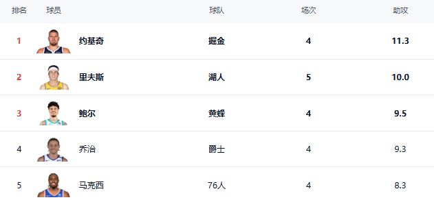 助攻榜排名第二